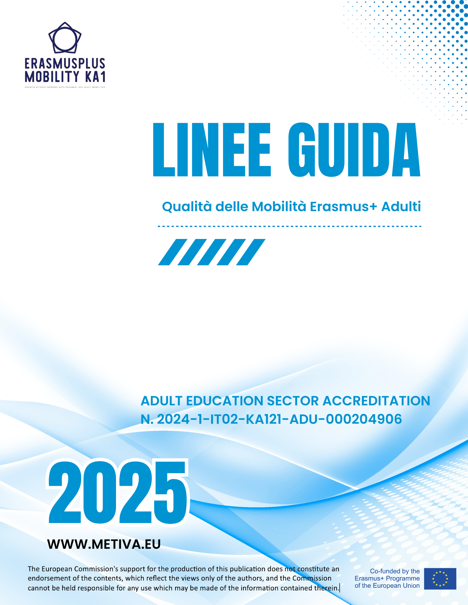 Le Linee Guida per la Qualità delle Mobilità Erasmus+ Adulti di Metiva Academy definiscono i principi e le pratiche operative per garantire standard elevati di organizzazione, inclusione, sicurezza e impatto formativo. Esse si fondano sull’esperienza maturata nelle quattro mobilità realizzate nel 2024‑2025 (Tenerife, Praga, Barcellona e Atene), trasformate in procedure replicabili. L’obiettivo generale è assicurare che ogni mobilità contribuisca in modo misurabile alla crescita professionale dei partecipanti e al rafforzamento della rete HUB Con‑FormazionE+. Le Linee Guida fungono da documento di riferimento per partner, formatori, accompagnatori e coordinatori, fornendo criteri chiari di pianificazione, monitoraggio e valutazione.